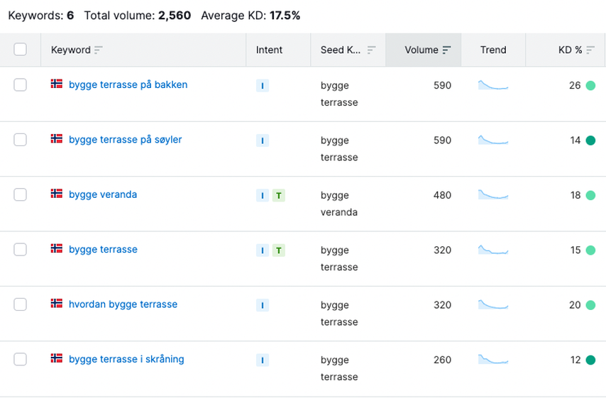 Kartlegg hvilke ord og begreper som faktisk brukes i søk. Visste du for eksempel at det er fire ganger så mange søk i måneden på nøkkelord som nevner «bygge terrasse», sammenlignet med «bygge veranda»?