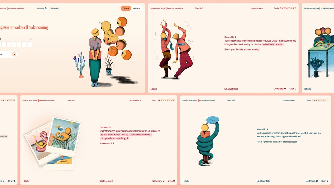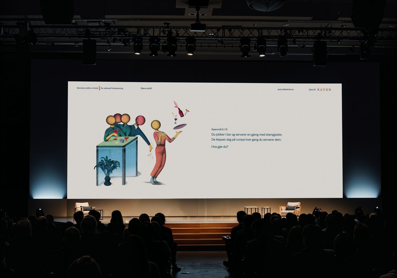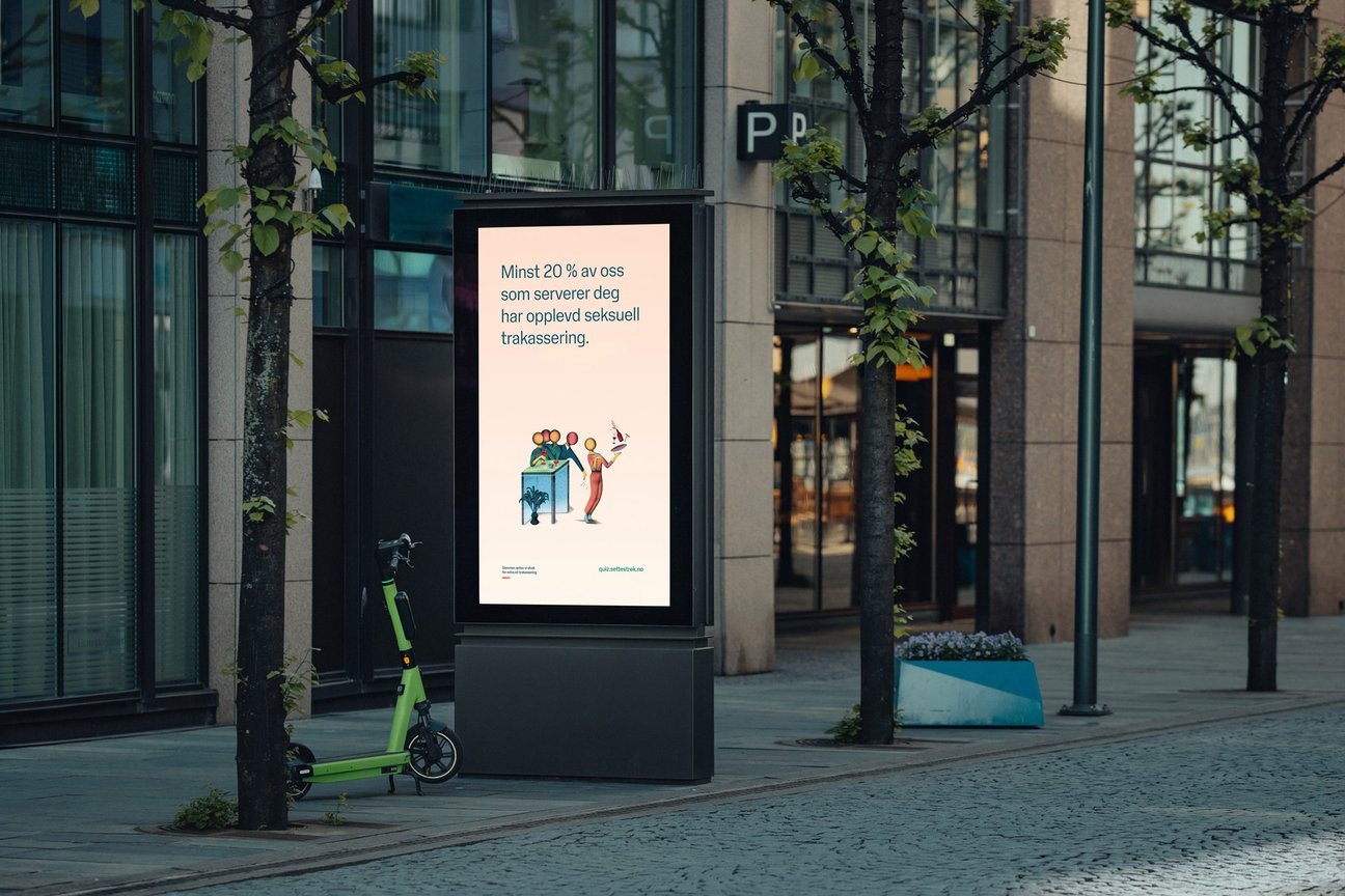 Vår løsning har vært å bruke illustrasjon som et sterkt visuelt virkemiddel for å gi et bilde på uønskede situasjoner og visualisere vanskelige og kjente problemstillinger i utelivsbransjen, som mange vegrer seg for å snakke om.