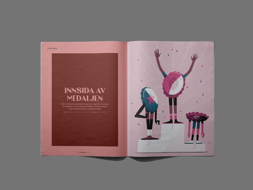 Vi bidrar blant annet med konseptuelle ideer til forside og temasaker for hver utgave. Dette gjør vi i samarbeid med redaksjonen, fotografer og illustratører.